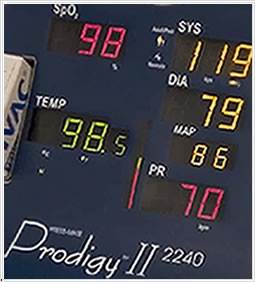 Large, colorful LED readouts in parameter-specific colors make reading the blood pressure (yellow), SpO2 (red), and temperature (green) especially easy, even from across the room, and help avoid data confusion and documentation errors.