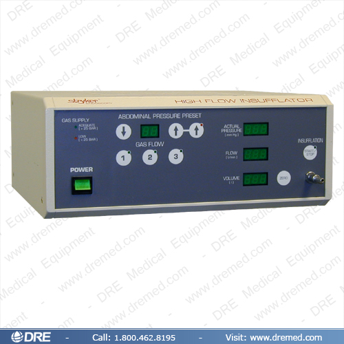 The Stryker 16L High Flow Insufflator is a compact and durable endoscopic tool with precise pressure measurement to 31 mm Hg and a selection of three gas flow rates for optimal operation.