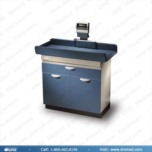 Built into the upholstered top is a standard measurement arm and scale that allows you to easily measure the child. Its measuring arm pivots out, then folds back out of the way for further examination. And an upholstered panel at the foot end provides ease and accuracy of measurement... no more tape measures or marking on the exam table paper.