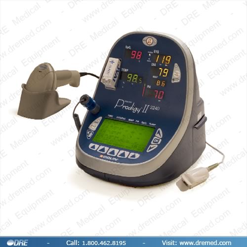 Colin Prodigy Press-Mate Prodigy II® Portable Vital Signs Monitors, now with Smart Inflation™, offer the accuracy and flexibility you need with the ease of use you want. Advanced technology, a simple data entry system with optional bar code scanning technology, and a unique ergonomic design bring you our smartest, most versatile vital signs monitor yet! For spot check or patient monitoring, the Press-Mate Prodigy monitor offers NIBP, SpO2, E-Temp and a printer in any configuration.