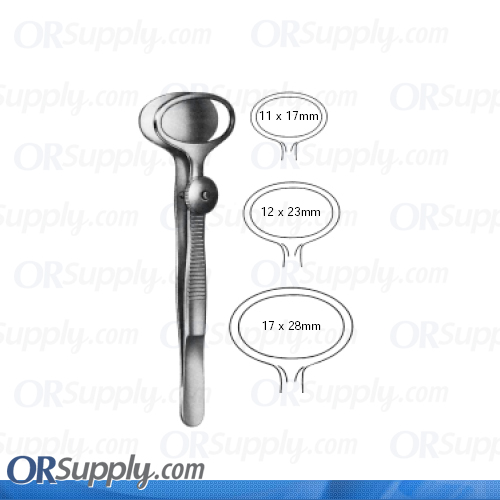 | Desmarres Chalazion Clamp - Large Ring, 17mm x 28mm: 9cm/3.5in | |
